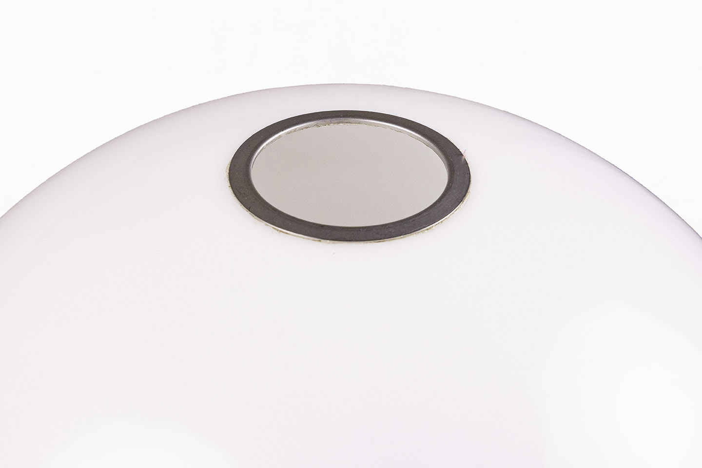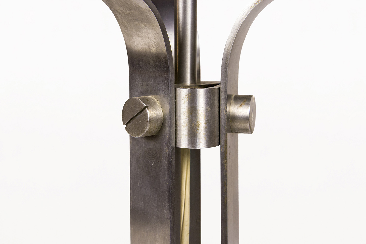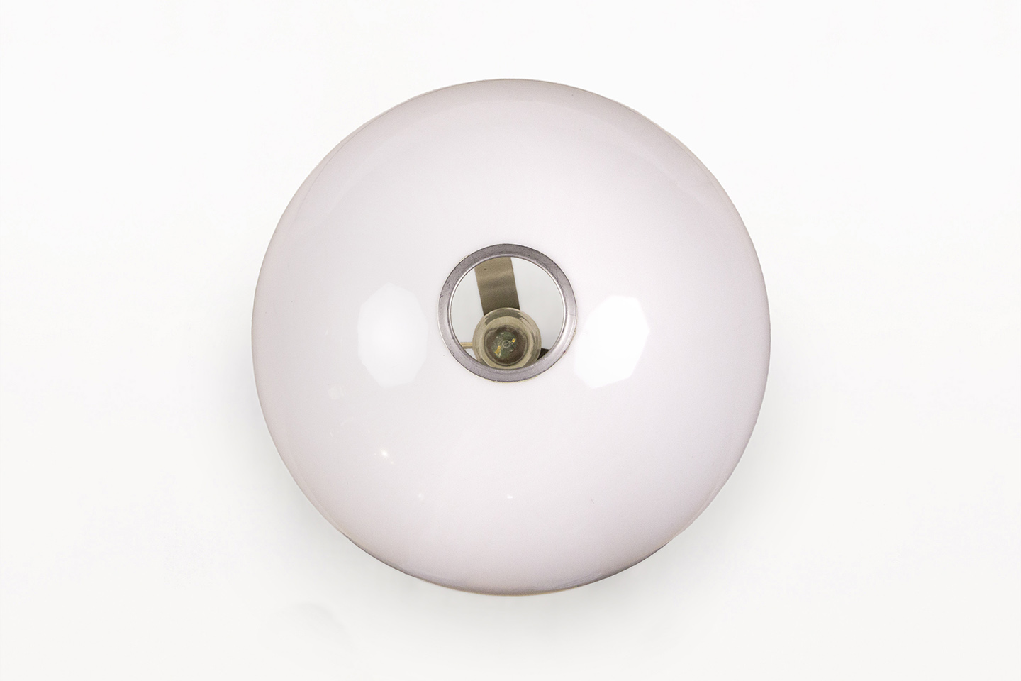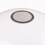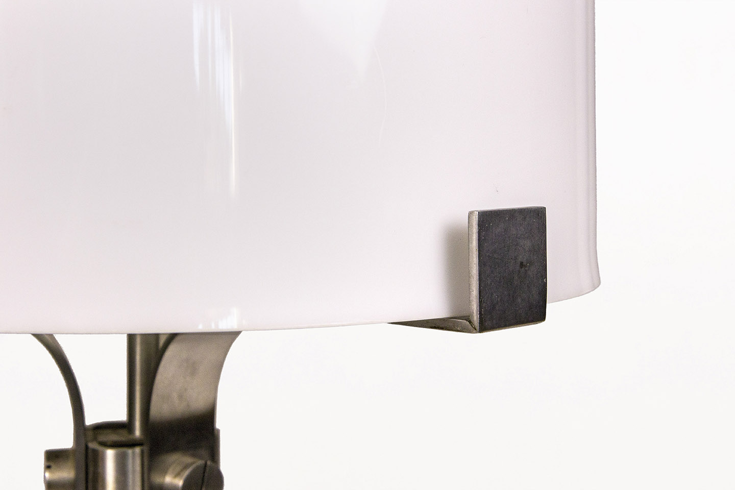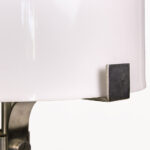DESCRIPTION: Chrome Table Lamp by Jordi Vilanova i Bosch, Circa 1960, Spain. Interpretation of Vilanova’s “Anella” design. Three curved steel legs, creating the base that holds a circular white lucite lampshade.